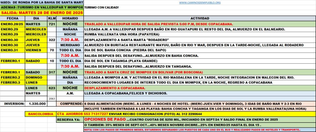 Salida: 28 de Enero de 2025 – Regreso: 3 de Febrero de 2025