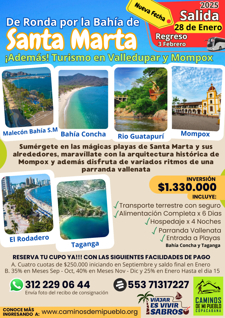 ¡TURISMO CON CALIDAD! – RONDA POR LA BAHÍA DE SANTA MARTA «ÁDEMAS MOMPOX y VALLEDUPAR»